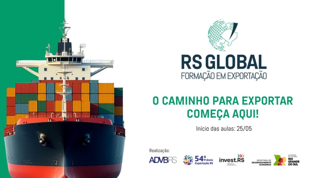 O programa RS Global – Formação em Exportação, uma realização da ADVB/RS, por meio do Conselho do Prêmio Exportação RS, e da Invest RS, é um curso completo para empresas gaúchas que desejam se capacitar na área de exportação e expandir seus negócios para o mercado global.